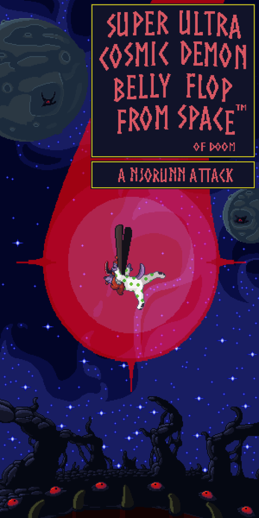 Narrator: “Using the propulsion of her makta beam, njorunn positioned herself for her ultimate technique: The Super Ultra Cosmic Demon Belly flop from SpaceTM of doom. As the demon descended, she proceeded to stack multiple empty and needlessly complex buffs on herself in order to increase her spellmass. This was in an effort to make her fall more… impactful.”